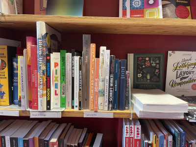 Small selection of type-related publications, but no real typography basics. It is most likely that the situation is similar in the other boesner stores.