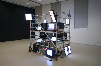 In a first research phase, we developed with students a collective dynamic type-and-coding installation. It was presented in the context of the 30-years of design department exhibition at University of Applied Sciences Potsdam.